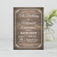 Rustic 70th Birthday and Retirement Party Invitation Card with Rustic Wood Background. Vintage Retro Country. For further customisation, please click the "Customise it" button and use our design tool to modify this template.