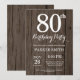 Rustic 80th Birthday Invitation. Rustic Wood Background. Vintage Retro Birthday. Adult Birthday. Men or Women Bday Invite. 13th 15th 16th 18th 20th 21st 30th 40th 50th 60th 70th 80th 90th 100th, Any age. For further customisation, please click the "Customise it" button and use our design tool to modify this template.