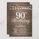 Rustic 90th Birthday Invitation String Lights Wood