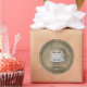 A baby is brewing favour tags with a tea cup illustration ,on a brown watercolor background ,for a tea party baby shower favours.