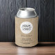 Rustic Add your Logo Custom Text Company Promotion Can Cooler. Rustic beige background. Insert your logo into the template and customise the text, company name, address and contact information. Business promotion or giveaway for your clients and business partners.