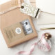 Rustic Add your Logo with the Custom Text Photo Company Promotional stickers. Rustic beige background. Insert your logo and photo into the template and customise the text, company name, address and contact information.