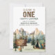 Celebrate your little camper's first birthday in style! 🏕️ This charming invitation features a cosy campsite, towering evergreen trees, and majestic mountains in soft, earthy tones. With its rustic wooden accents and playful typography, it sets the perfect tone for an outdoor adventure-themed party. Whether you're planning s'mores by the fire or fun under the stars, this design invites guests to embark on a delightful birthday journey. It's time to make memories that will have everyone saying, "What a happy camper!"