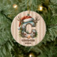 Rustic Adventure Letter C Santa Hat and Campfire Ceramic Ornament