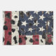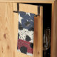 Distressed American flag with bold leopard print overlay on rustic wood texture. Ideal for patriotic women, country style lovers, and those who love bold USA-inspired kitchen towel.