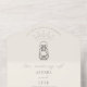 Amethyst grey colour illustration of vintage style oil lantern with line art botanical border. Background is off white. Includes rsvp with qr code