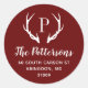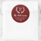Custom round return address stickers personalised with your family monogram and address. This modern rustic design features your monogram initial with deer antlers in burgundy and white colours. Use the design tools to change the background colour and fonts to further customise your own unique design. Perfect for addressing holiday cards, wedding stationery and more.