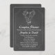 The Hunt is Over! Rustic Antlers Chalk Engagement Party card design invitation featuring deer antlers with The Hunt is Over script and initials, Engagement Party typography, chalkboard frame, on a chalkboard background. Use Customise tool to add your info.