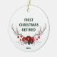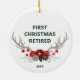 Rustic Antlers Personalised 1st Christmas Retired Ceramic Ornament. Personalise with your custom information on both front and back.