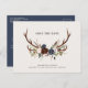 Rustic antlers script navy burgundy floral wedding announcement postcard