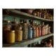 Step into an old-world apothecary where every jar whispers tales of remedies, rituals, and ancient wisdom. Earthy tones, glass bottles, and neatly packed herbs line a weathered teal shelf—perfectly preserved in vintage harmony. A must-have for herbalists, potion lovers, and cozy cottagecore dreamers.