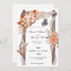 This charming Muslim wedding invitation features a rustic design with soft peach and orange floral accents, complemented by a draped fabric motif. The invitation radiates elegance and warmth, perfectly suited for a joyful Nikkah celebration.