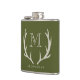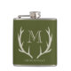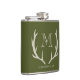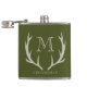 Rustic Army Green Antler Custom Groomsmen Gift Hip Flask