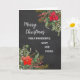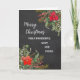 Merry Christmas for aunt and uncle card in rustic watercolor poinsettias and foliage and chalkboard background.