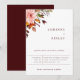 Beautiful watercolor rustic autumn foliage and floral bouquet in trendy shades of orange, rust, blush and green. Features, rustic burgundy red colour backing and text. Modern design style template.
