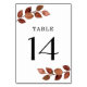Table number card prints on front and back (double-sided). Design features simple autumn branch in red and brown watercolors. Items are printed exactly as they appear on your screen when you add to cart, so personalise and add each table number that you need to your cart individually.