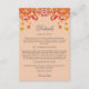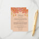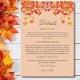 Set the tone for your rustic autumn celebration with this elegant, personalised Fall in Love Wedding details card. Designed with a charming country feel, this card features a botanical arrangement of warm orange, brown, and golden yellow leaves intermingled with pine cones, acorns, and luscious ruby red berries, all set against a soft orange background. The stylish layout is enhanced with modern mocha typography and graceful calligraphy script font, offering a beautiful balance of rustic charm and refined elegance. Perfect for sharing important wedding information, such as accommodation details, directions, or itinerary, this wedding details card complements your Autumn Wedding theme flawlessly. Whether you're planning a countryside celebration or a cosy barn reception, this Fall in Love Wedding insert is a lovely way to keep your guests informed while embracing the beauty of the season.