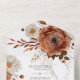 Introducing this exquisite All-in-One wedding invitation featuring a delicate floral design in the rich and warm hues of autumn. This beautifully crafted invitation is perfect for couples seeking a touch of elegance and romance for their fall wedding celebration. The All-in-One wedding invitations are both beautiful and practical by combining the wedding invitation with an easy to remove perforated RSVP postcard. They are also quick and easy to prepare for mailing. Simply address the invitation, fold the back flap and seal with the included clear stickers. Once your guests receive the pre-addressed invitation they simply tear off the perforated RSVP card and drop it in the mail.
