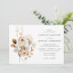 This rustic floral wedding invitation captures the essence of the romantic fall season with warm hues of ivory, cream, brown, and rust-orange. The captivating design flawlessly blends the beauty of calligraphy with bouquet of autumn flowers and delicate foliage, brought to life through the artistry of watercolors, creating a truly mesmerising keepsake for your special day. Personalise the elegant autumn wedding invitation with your names and wedding details. The back of the fall wedding invitation displays your full-bleed, horizontal engagement photo. This design coordinates with our Rustic Autumn Floral wedding collection.