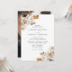 This rustic floral wedding invitation captures the essence of the romantic fall season with warm hues of ivory, cream, brown, and rust-orange. The captivating design flawlessly blends the beauty of calligraphy with bouquets of autumn flowers and delicate foliage, brought to life through the artistry of watercolors, creating a truly mesmerising keepsake for your special day. Personalise the elegant autumn wedding invitation with your names and wedding details. The back of the fall wedding invitation displays your full-bleed, vertical engagement photo. This design coordinates with our Rustic Autumn Floral wedding collection.