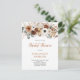 This bridal shower invitation showcases a refined floral composition arranged in a beautiful bouquet. It features a mix of soft, earthy-toned flowers such as dahlias, anemones, and proteas, in the colors of autumn, complemented by muted green foliage. Personalize with your own information.
