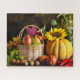 Rustic Autumn Harvest Flowers Pumpkin Jigsaw Puzzle