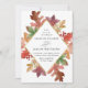 Invite guests to your wedding with our beautiful, rustic fall wedding invitations. The autumn wedding invitations feature your wedding details framed in faux gold foil with watercolor fall leaves in shades of brown, green, burgundy, gold, rust, yellow, orange, and burnt umber. The fall leaves wedding invitation reverses to a solid burgundy colour.