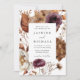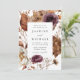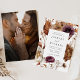 This rustic floral wedding invitation captures the essence of the romantic fall season with warm hues of marsala, purple, cream, ivory, brown, and rust-orange. The captivating design flawlessly blends the beauty of autumn flowers and delicate foliage, brought to life through the artistry of watercolors, creating a truly mesmerising keepsake for your special day. The back of the fall wedding invitation displays your full-bleed, vertical engagement photo. This design coordinates with our Rustic Autumn Floral wedding collection.