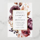 Rustic fall wedding invitations featuring watercolor autumn flowers and foliage in shades of marsala, burgundy, purple, orange, and brown. Your wedding details are framed by a gold foil border. The foil wedding invitations are perfect for fall weddings. Designed to coordinate with our Rustic Autumn Floral wedding collection.