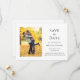 Rustic Wedding Save the Date card with an Autumn photography design. With customisable lettering, you can add your names, and wedding information. You also add your own photo to add a touch of personalisation. Great for planning your upcoming nuptials.