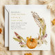 Celebrate your growing family with this cosy and elegant baby shower invitation, showcasing a charming watercolor vignette of orange and white pumpkins, wildflowers, and soft muted foliage. The warm autumnal tones are perfectly complemented by modern, easy to read script, creating a classic yet inviting design for fall festivities. Ideal for an autumn or harvest themed gathering, this invitation blends rustic beauty with understated sophistication, setting the stage for a heartfelt celebration honouring the arrival of your new little one.