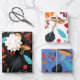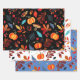 Autumn themed wrapping paper with watercolor pattern on varied colour backgrounds, blue-violet. black and white.  Makes a whimsical heavy weight decoupage pattern as well.