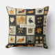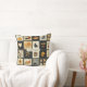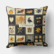 This autumn patchwork quilt-inspired throw pillow features warm seasonal motifs arranged in rustic squares. Pumpkins, birds, hearts, and floral branches appear alongside plaid and chequerboard blocks, with stars, snowflake-like shapes, and baskets adding charming variety. Rendered in earthy tones of orange, brown, cream, red, and black, it captures the cosy farmhouse aesthetic of the harvest season. Perfect for Thanksgiving, rustic country décor, fall crafts, and anyone who loves primitive folk art style.