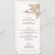The romance of an Autumn wedding is captured in this elegant design featuring watercolor roses and greenery in warm Fall colours of terracotta, ivory, rust, chestnut, dusty blue and sage green with touches of gold sparkles. This design also features unique text graphics in a custom calligraphy script font with colour that can be customised in the design editor. Includes text fields for menu items.