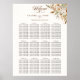The romance of an Autumn wedding is captured in this elegant design featuring watercolor roses and greenery in warm Fall colours of terracotta, ivory, rust, chestnut, dusty blue and sage green with touches of gold sparkles. This design also features unique text graphics in a custom calligraphy script font with colour that can be customised in the design editor. Seat names are in blocks of 10 and 12 tables.