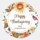 Rustic Autumn Sunflower Floral Thanksgiving Script Classic Round Sticker