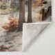 A watercolor rendition of 2 rustic-styled cabins in the woods during autumn.