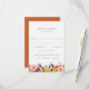 Colourful rustic Autumn forest floral and foliage arrangement border with burnt orange colour backing, wedding RSVP cards with meal choice option.