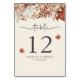 This elegant wedding table number card features burnt orange and terracotta watercolor florals with boho garden roses and earthy autumnal accents. Perfect for fall weddings, it combines rustic charm and modern calligraphy for a romantic, sophisticated table setting.