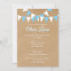 This pretty baptism, christening or first communion invitation features a rustic kraft background, blue and white bunting, and gorgeous script calligraphy name. The reverse features rows of blue and white bunting on a matching rustic kraft panel background.