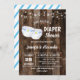 Rustic Baby Boy Diaper Shower template featuring rustic wood background, string lights, blue baby diapers, and pink & white back. To access advanced editing tools, please go to “Personalise” and then "click to customise further" link.