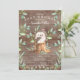 Cute baby shower invitation featuring sweet baby hedgehog with mum sitting on a tree stump and framed with natural green watercolor leaves set on a Rustic background. Flip our invite over to view a matching green leaf back for an extra special touch..