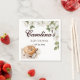 These "Baby is Brewing" rustic coffee-themed baby shower napkins feature a cosy design with a coffee cup at the bottom left corner and soft white flowers in shades of beige and brown at the top. The elegant yet rustic design perfectly matches a laid-back, coffee-inspired baby shower. The earthy tones and delicate floral accents make these napkins an ideal addition to your celebration, adding both charm and practicality to the event.