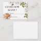 The "Rustic Baby is Brewing Coffee Guess How Many Enclosure Card" features a charming design with a coffee cup illustration at the bottom left and delicate white flowers at the top. Guests are invited to guess how many coffee beans or other small items are in a jar, adding a fun and interactive activity to the baby shower.
