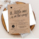 This trendy gender neutral invitation features a hand lettered heading, "A little one is on the way" and your information in a grid style on the front. Both sides have a kraft background. Choose from one of the white paper options for best results.