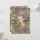 Cute baby shower invitation featuring sweet baby wolf with mum sitting on a tree stump and framed with natural green watercolor leaves set on a Rustic background. Flip our invite over to view a matching green leaf back for an extra special touch..