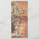 A rustic wedding program design featuring an image of a mason jar full of white baby's breath flowers on a wood background.