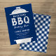 Celebrate your birthday with a unique twist! Our BBQ-themed birthday party invitations are here to set the mood right. With a trendy blue backdrop contrasted by a streamlined BBQ silhouette, these invites are truly one-of-a-kind. The elegance of the template is maintained with an easy-to-personalise feature that allows you to infuse your personal touch. Flip the card, and you're greeted with a rustic blue and white plaid pattern, adding a vintage charm.