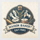 This elegant, vintage-style circular logo for your bakery shop, beautifully captures the artistry of traditional baking. The design is split into two detailed scenes: one side shows hands expertly kneading dough, while the other depicts a hand delicately frosting a cake with a piping bag. Central wheat stalks and a classic wood-fired oven icon anchor the composition, framed by a rolling pin and a whisk. Set against a textured, cream-coloured background with subtle pastry patterns, the navy and gold colour palette conveys a sense of premium quality and heritage, proudly displaying an "EST. 20xx" establishment date.