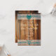 These rustic country wedding invitations feature a dark brown distressed barn wood with a barbed wire border design on the top and the bottom in teal turquoise blue over a white overlay stripe. At the top is a horseshoe and a heart, and at the bottom is a bull horn skull. Just add your wedding invitation wording to these country wedding invitation template. These are perfect for country western weddings, barn weddings, country style weddings, and Texas theme weddings. Great for brides with brown and turquoise as their wedding colours.